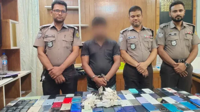 রাজধানীর গুলিস্তান এলাকায় অভিযান চালিয়ে ১১৭টি চোরাই মোবাইল ফোনসহ একটি মোবাইল চোরাকারবারি চক্রের সক্রিয় সদস্যকে গ্রেপ্তার করেছে ডিএমপির পল্টন মডেল থানা পুলিশ। উদ্ধার করা মোবাইল ও আনুষঙ্গিক সামগ্রীর আনুমানিক বাজারমূল্য প্রায় ১২ লাখ ১২ হাজার টাকা।